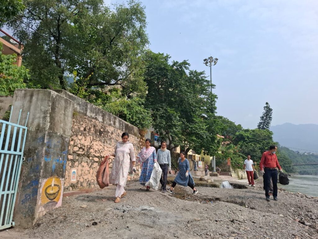 As part of the programs leading up to Gandhi Jayanti, the AYUSH Department today organized a cleanliness drive along the Ganga Ghats in Muni Ki Reti, Tehri Garhwal. The initiative, which covered the stretch from Shatrughan Ghat to Janaki Setu, was carried out by the officers and staff of the Government Ayurvedic Hospital, Muni Ki Reti.