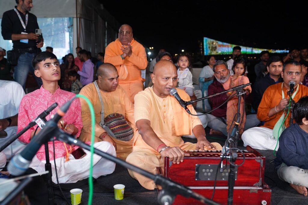 The divine and infectious energy of the ISKCON Kirtan swept through the festival grounds — filling the sacred air with the timeless chant of Hare Krishna, setting hearts on fire with devotion, and moving participants to dance in pure abandon and joy.