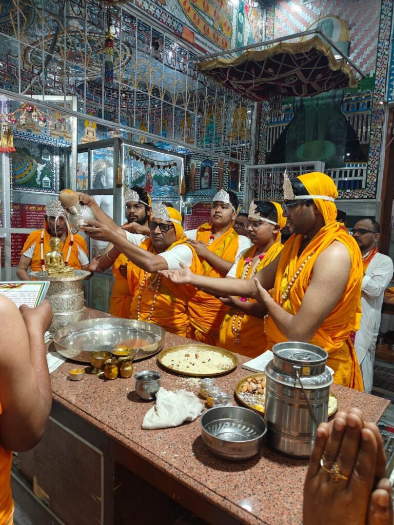 The highlight of the day was a grand Ratha Yatra, in which community members took to the streets of Rishikesh in a joyous procession, carrying the spirit of Lord Mahaveer’s teachings — of non-violence, truth, and inner peace — through the heart of the city. Devotees participated in the Abhishek of Lord Mahaveer with deep reverence, as bhajans and kirtans echoed through the mandir premises, creating an atmosphere of pure devotion.