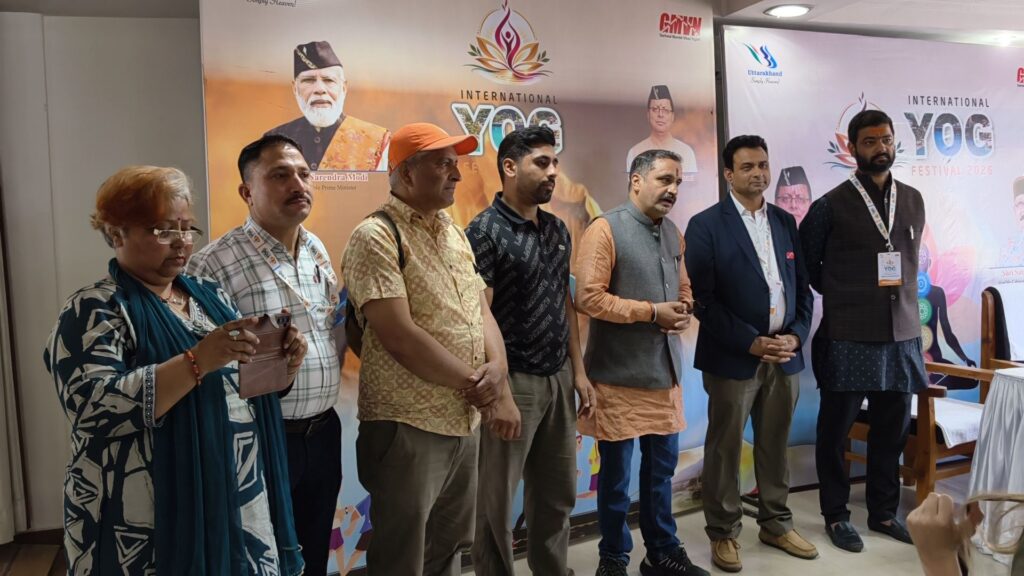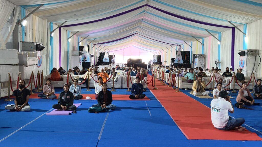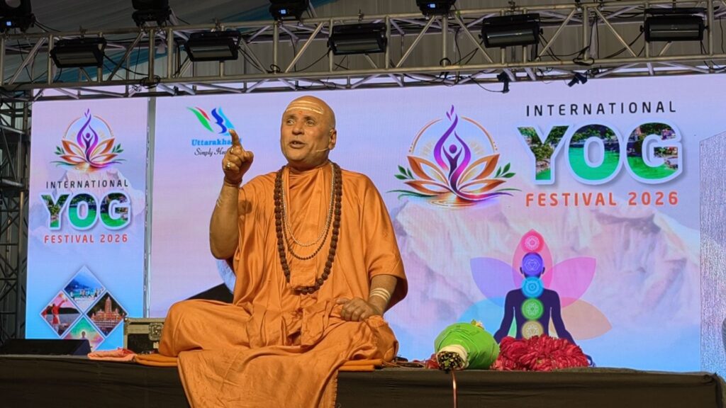 The sixth day of the International Yoga Festival commenced on a deeply spiritual note with a sacred Hawan performed at the Ganga Ghat by the Swami Narayan Ashram, invoking blessings for the day’s proceedings.