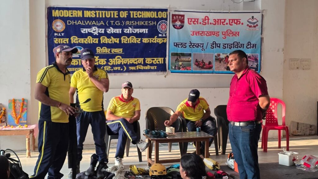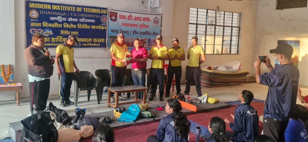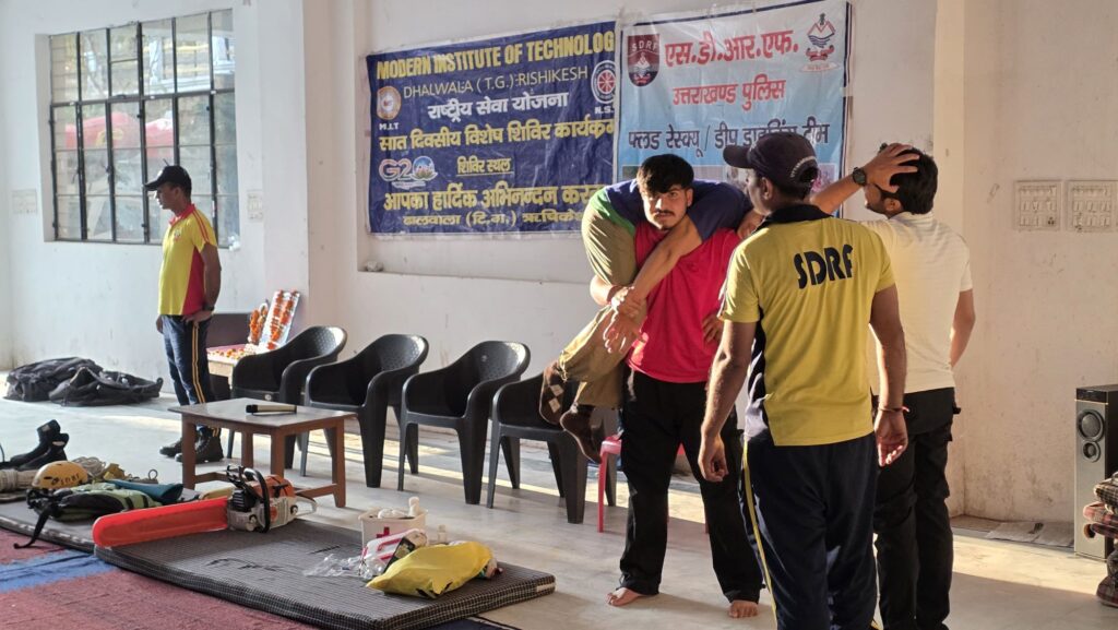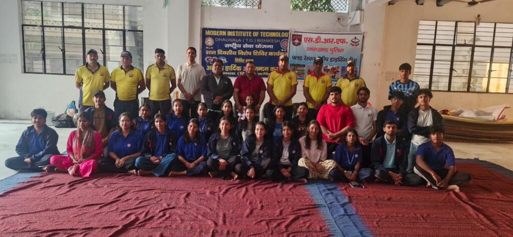 On March 27, 2026, the State Disaster Response Force (SDRF) team from Dhalwala conducted a comprehensive public awareness program at Kabir Chaura Ashram, Rishikesh. The program was organized under the leadership of Inspector Kavindra Sajwan and was specifically designed for participants from MIT Dhalwala’s NSS (National Service Scheme) unit.